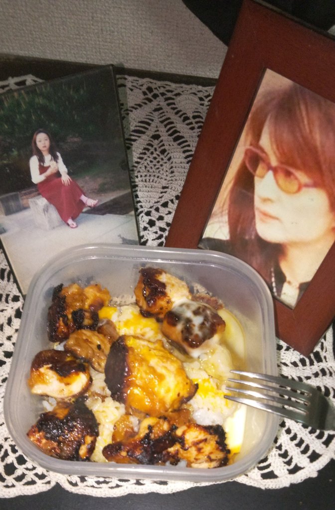 俊彦と一緒に親子丼もどきです🌹少し焦げてしまいました、笑。